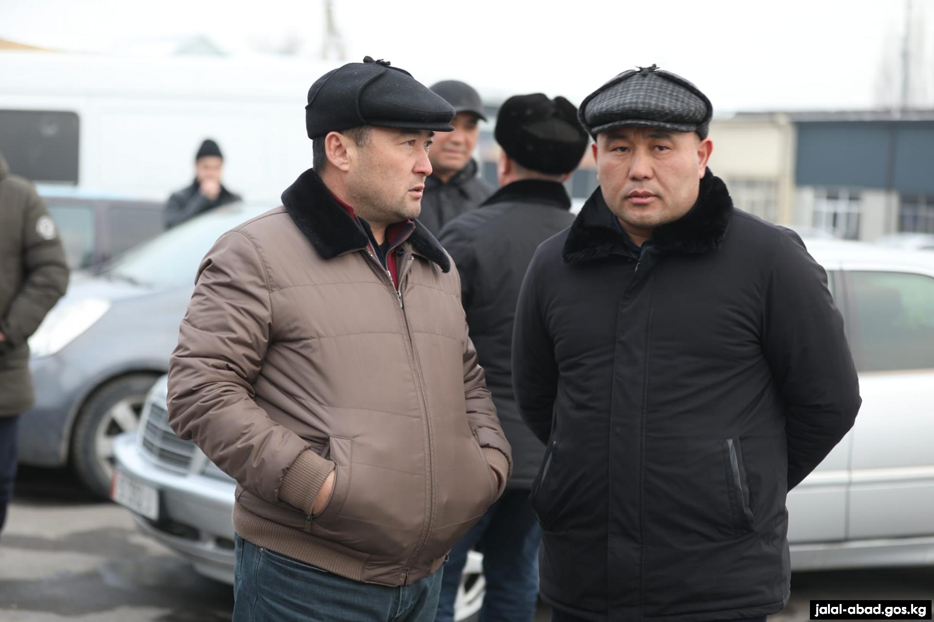 Эл өкүлдөрү базардын иштөө тартибинен кабар алуу менен бирге базардын сыртында автоунаа токтотуучу жайга жеңил курулуш катары курулуп жаткан соода жайларына нааразы болушту.