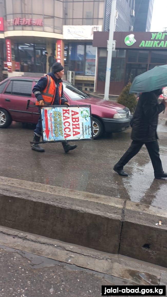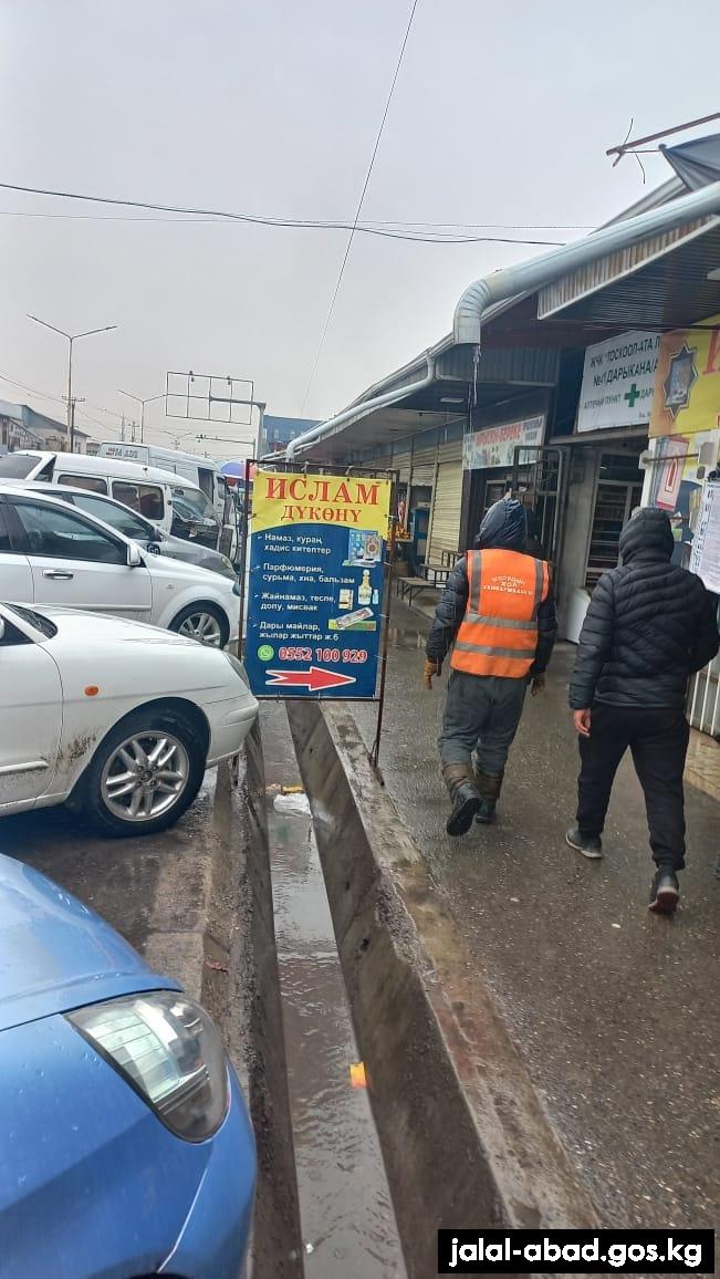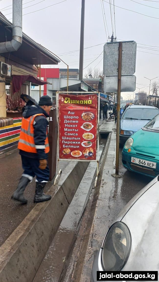 Жалал-Абад шаарынын мэри Эрнисбек Ормоковдун тапшырмасы менен шаардын Ленин, Чехов жана Ж. Бакиев көчөлөрүндөгү тротуарларга мыйзамсыз коюлган жана илинген, шаардын көркүн бузган жана жөө жүргүнчүлөргө ыңгайсыздык жаратып жаткан жарнамалар, соода күркөлөрү алынууда. Мэрдин орун басары Элдос Таев билдиргендей, мындай иретке келтирүү иши алдыда шаардын бардык көчөлөрүндө улантылат