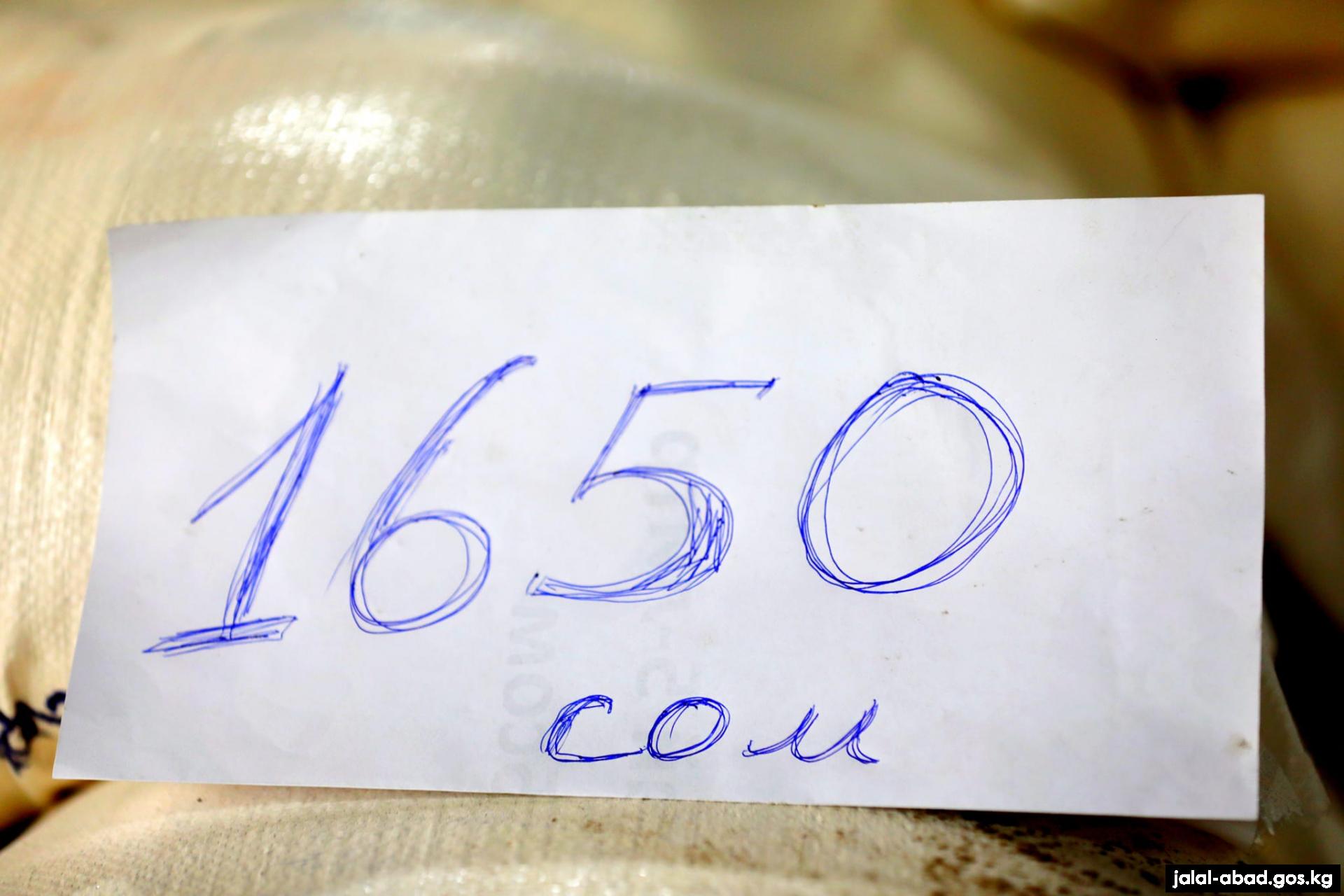 Жалал-Абад шаарындагы муниципалдык базарда 1-сорттогу ун бир мүшөгү 1650 сомдон сатылууда.